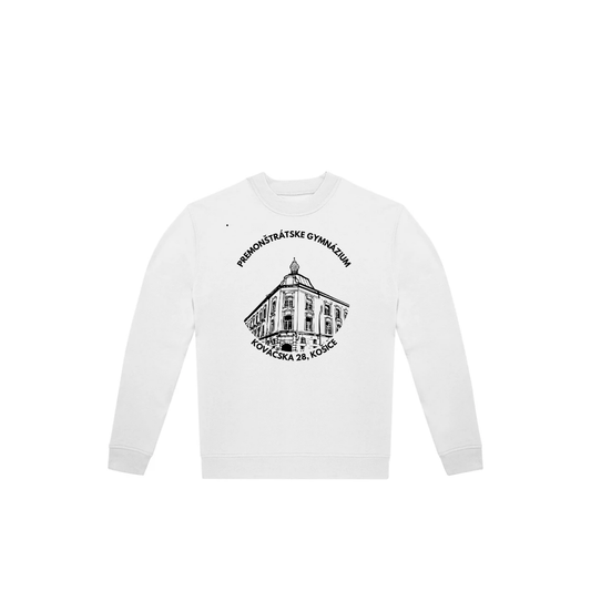 Mikina bez kapucne s potlačou budovy školy v rámčeku
