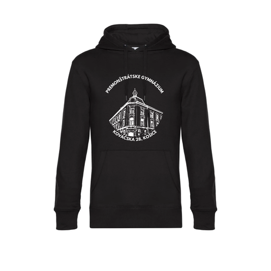Mikina s kapucňou a potlačou budovy školy v rámčeku
