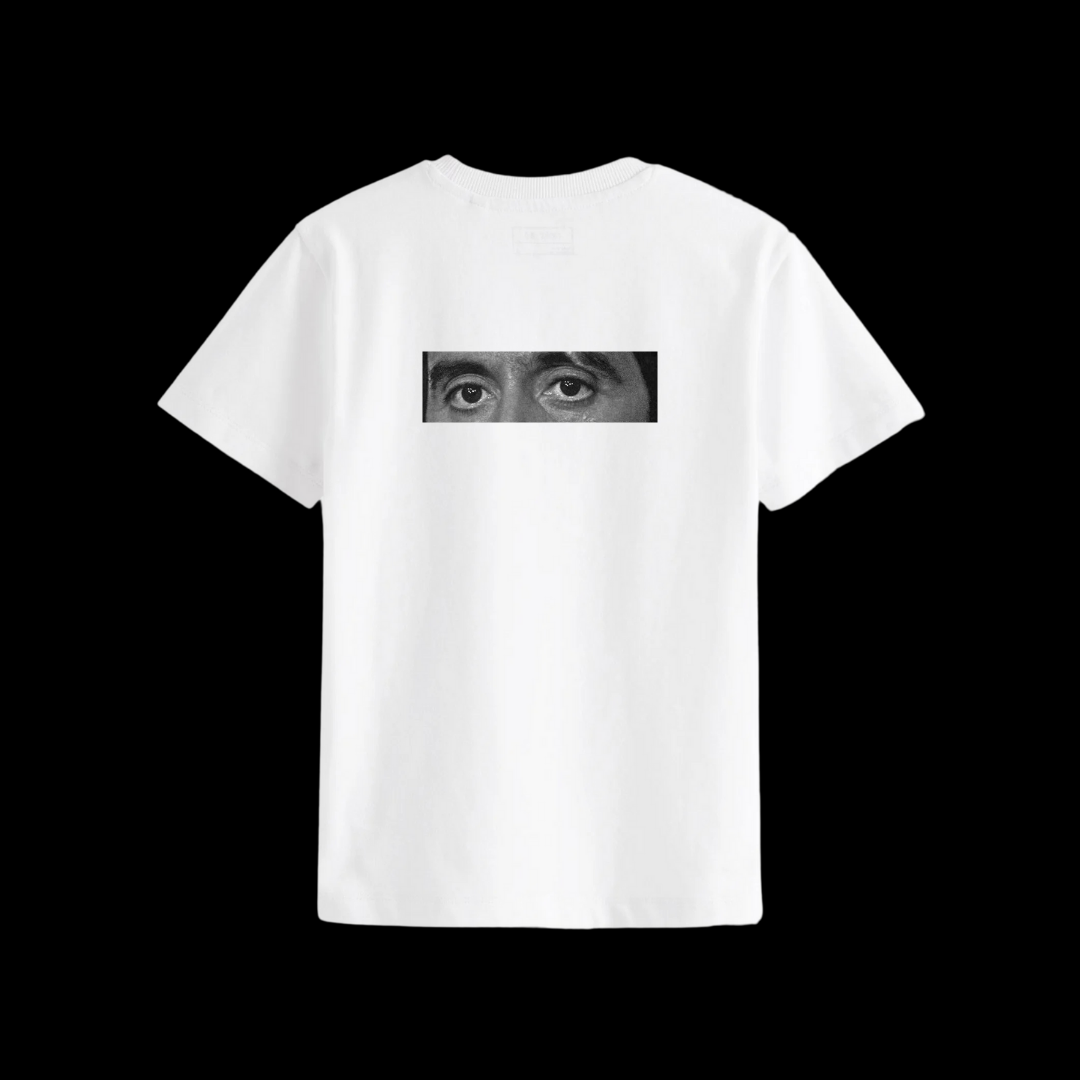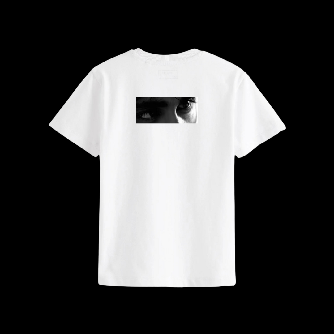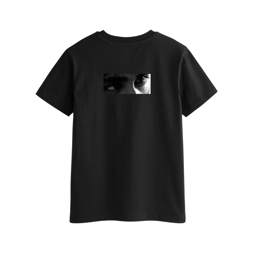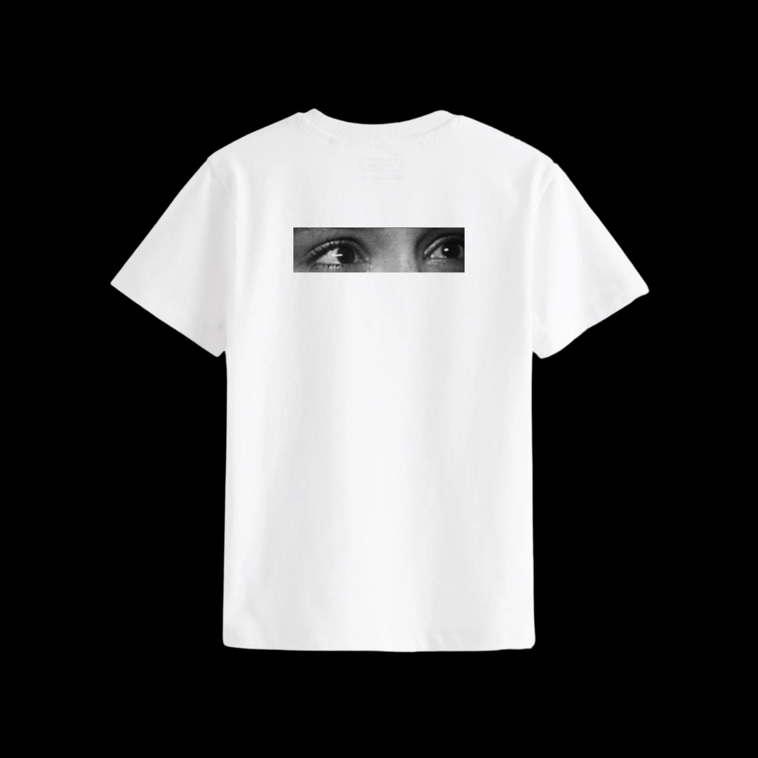 Krátke unisex bavlnené tričko s potlačou očí na prednej strane a nápisom „THE EYES THEY NEVER LIE“ na zadnej strane.
